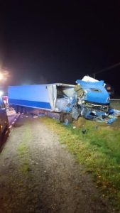 Як попередньо встановили поліцейські, 64-річний громадянин України, який керував вантажівкою DAF, хотів уникнути зіткнення з іншою вантажівкою, котра їхала попереду. Він різко повернув ліворуч, але при цьому зачепився за неї кабіною та напівпричепом.